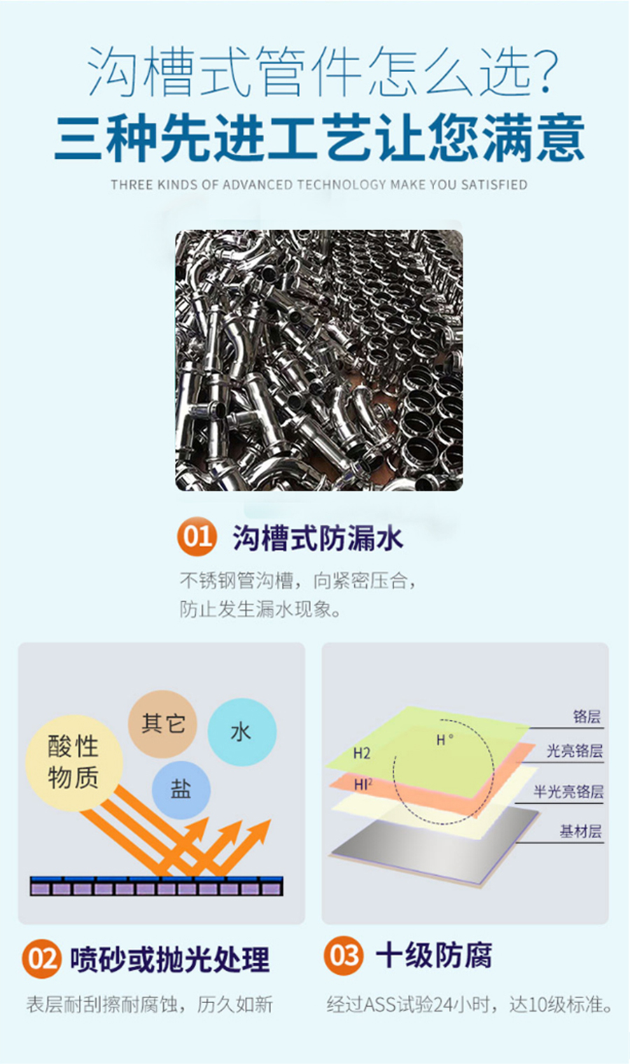 2.不銹鋼卡箍管件連接操作簡單,省事省工,因此具有非常良好的經(jīng)濟(jì)效益。